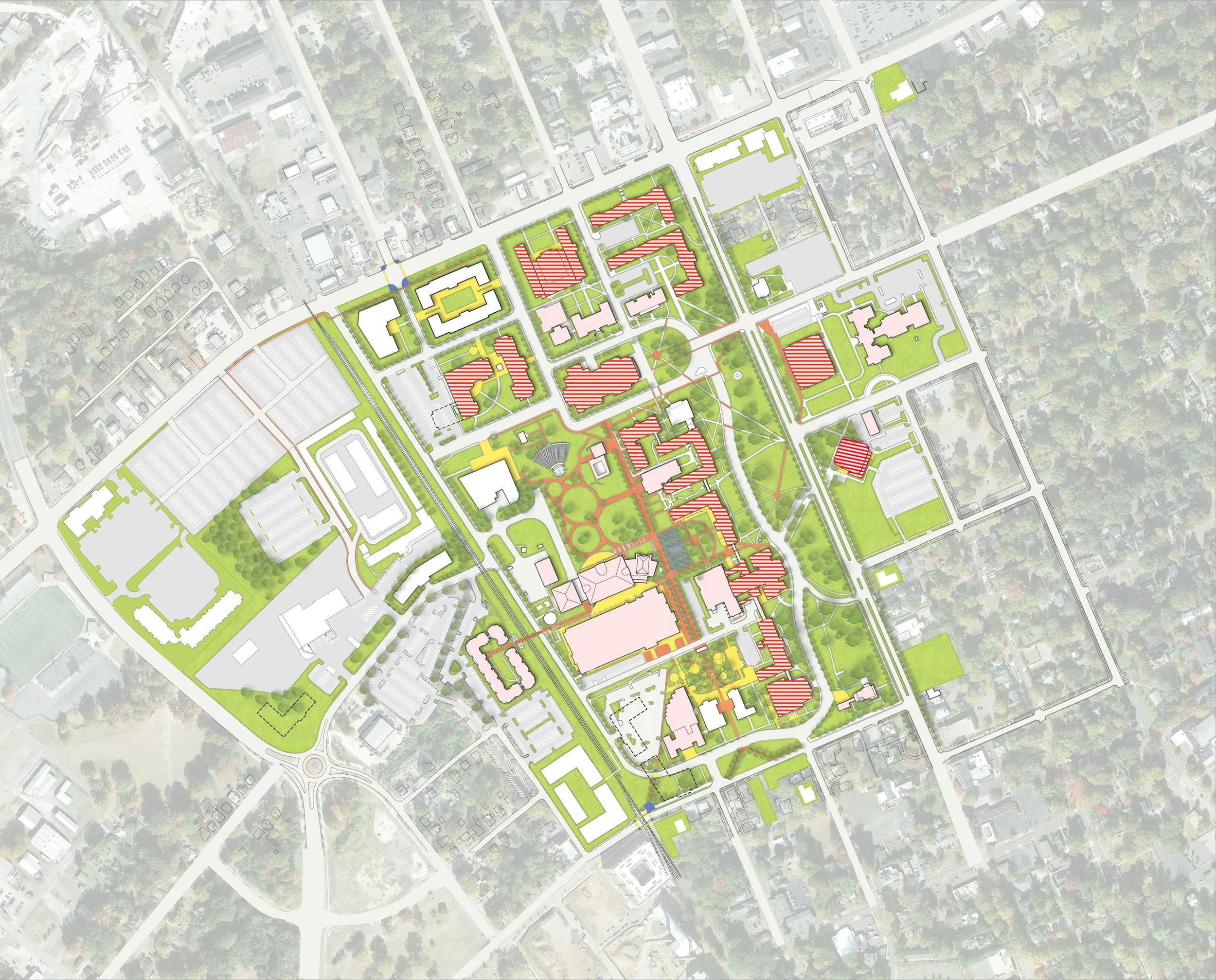 Several recurring themes emerged – prioritize renovation and repurposing with strategic new construction; make campus connections; enhance quality and safety of the pedestrian network; and improve and activate outdoor space.